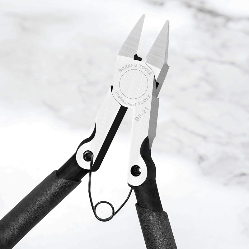 Corte multifuncional: Nuestros cortadores de mazarotas y alicates de corte lateral son más que simples herramientas; son soluciones versátiles para diversas necesidades de corte. Ya sea que esté cortando bridas, trabajando con mazarotas de plástico para maquetas o realizando tareas en electrónica, joyería o aficiones como el corte de maquetas, estos alicates de corte al ras son esenciales. Su diseño compacto permite cortes al ras rápidos y limpios incluso en los espacios más reducidos, optimizando sus proyectos y haciéndolos más manejables.
