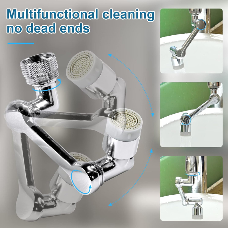 Rotación multiángulo de 1080°: El brazo robótico del aireador del grifo puede girar 1080 grados, lo que permite una limpieza multifuncional sin puntos muertos. Menos curvas, más práctico. Tomar agua y lavarse directamente la cara, el cabello y los dientes, especialmente para niños, ancianos y mujeres con cabello largo.