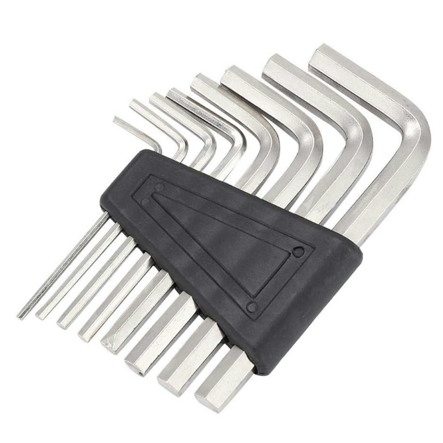 Este juego incluye 9 llaves Allen de los tamaños más comunes, fabricadas con acero cromo vanadio de alta calidad, lo que garantiza una gran dureza, resistencia y durabilidad. Ideal para reparaciones de bicicletas, montaje de muebles, mantenimiento de maquinaria y más. Es la herramienta perfecta tanto para el hogar como para técnicos profesionales.