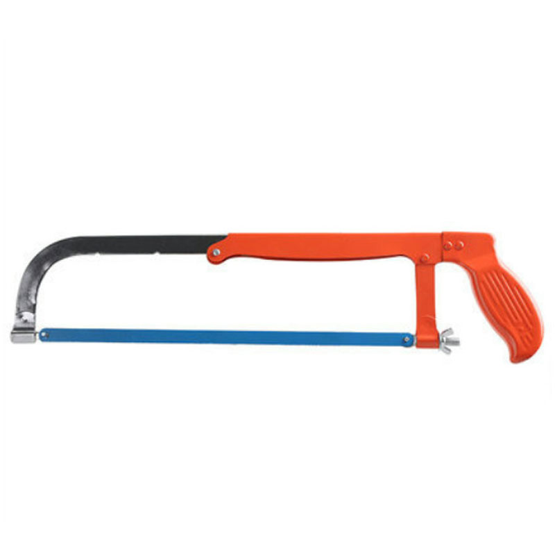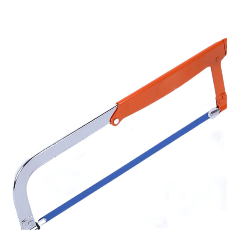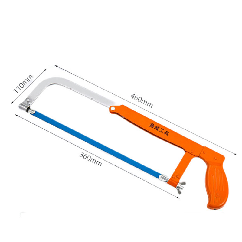 Este marco de segueta regulable está fabricado con material metálico de alta resistencia, lo que le confiere una estructura sólida y duradera. El mango ergonómico ofrece un agarre cómodo y estable, siendo una herramienta práctica para el corte de metales, plásticos, maderas y otros materiales.