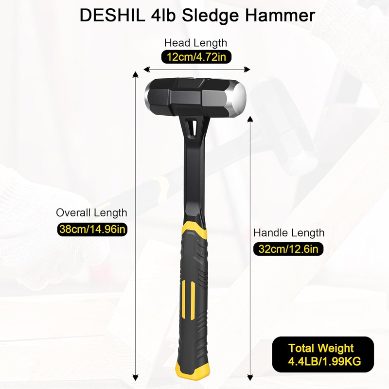 Cabeza de martillo con equilibrio de precisión: El mazo de 4 lb tiene un peso experto para una fuerza de impacto óptima, brindando la máxima eficiencia en cada golpe.