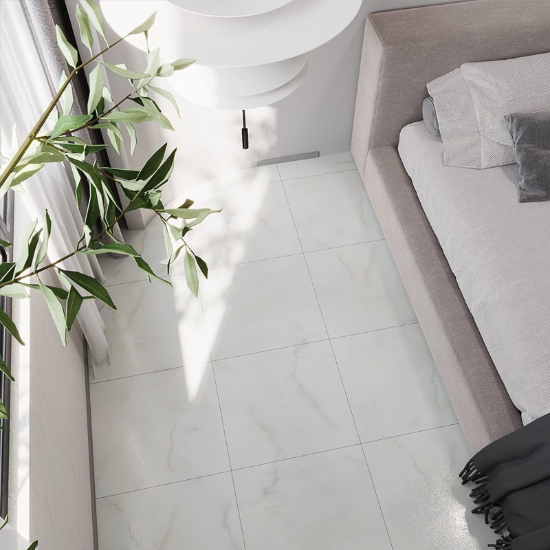 Paquete de 4 baldosas de vinilo autoadhesivas de mármol blanco roto de 30 x 30 cm, impermeables, laminadas, autoadhesivas, extraíbles, para baño, cocina, dormitorio, caravana.