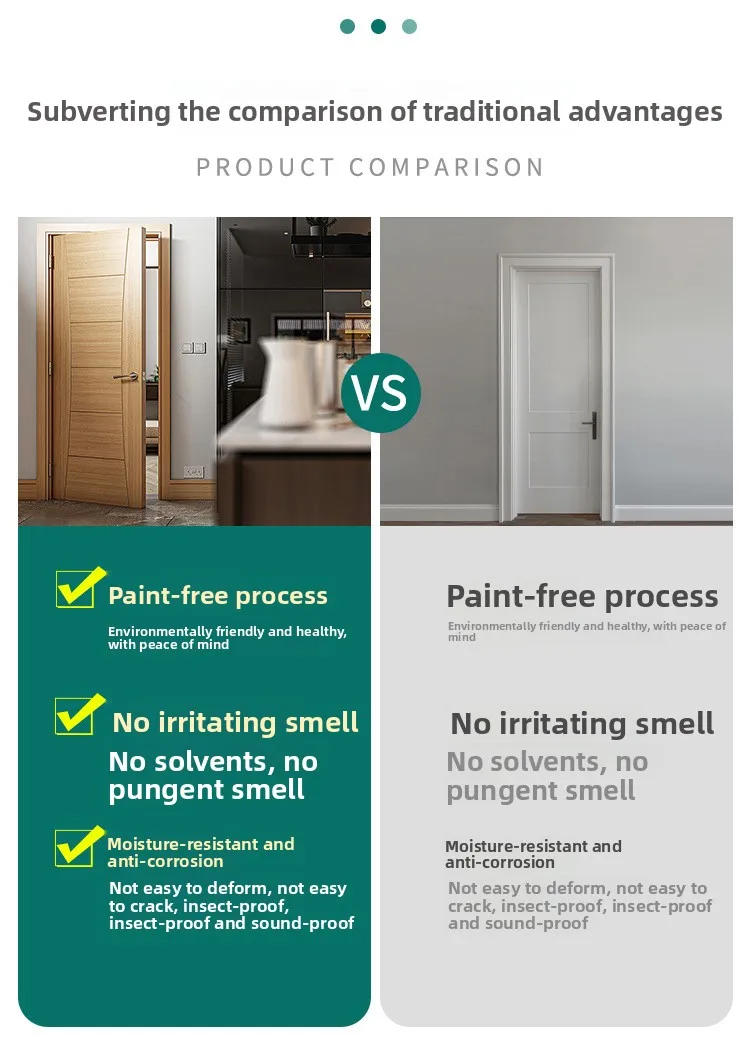 Puerta de dormitorio interior retro francesa personalizada, proceso de pintura compuesta de madera maciza, puerta de madera, puerta abatible abierta, ambiente
