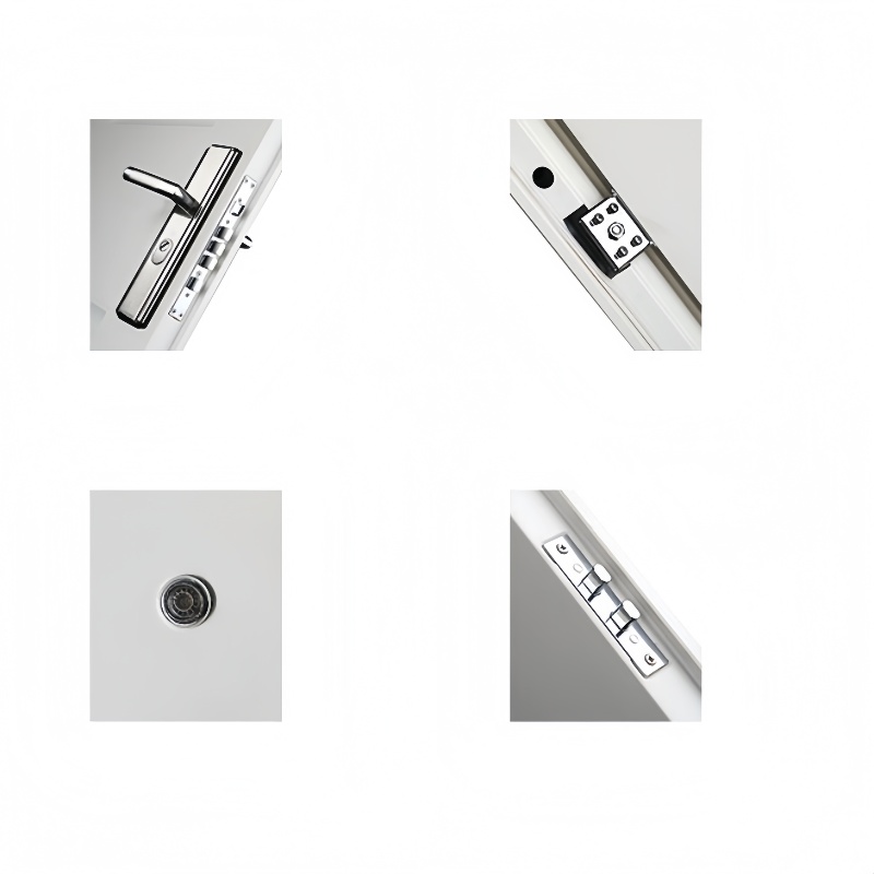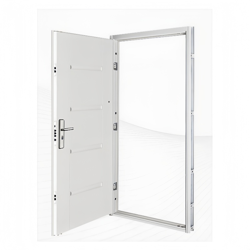 15 juegos de puertas con apertura izquierda, 15 juegos de puertas con apertura derecha, tamaño: 2050*900*70mm, Puerta metalica P/exterior incluido picaporte, marco, bisagra, visor, tiembre, tratamiento a base de esmalte standart. ,el diseño hecho por maquina – Grosor de Marco 1.0 ± 0.02 mm Grosor de puerta: 0.6± 0.02 mm