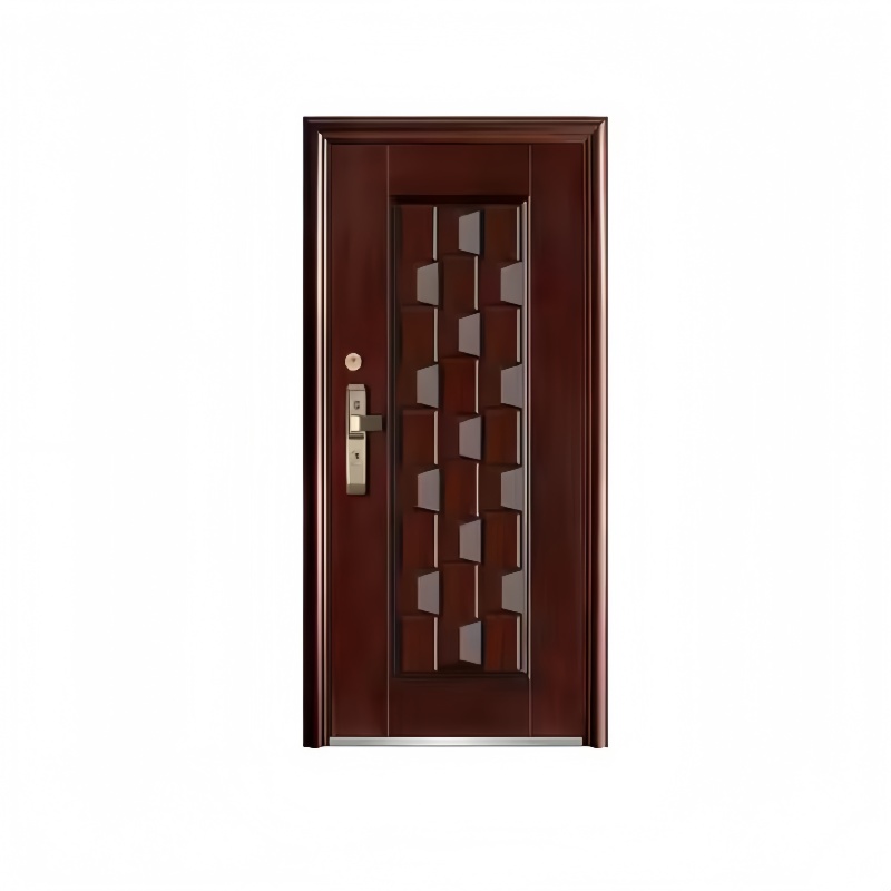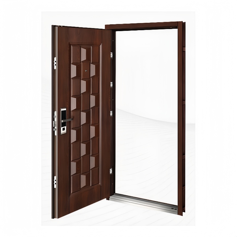 15 juegos de puertas con apertura izquierda, 15 juegos de puertas con apertura derecha, tamaño: 2050*860*50MM, Puerta metalica P/exterior incluido picaporte, marco, bisagra, visor, tiembre, tratamiento a base de esmalte standart. ,el diseño hecho por maquina – Grosor de Marco 1.0 ± 0.02 mm Grosor de puerta: 0.5 ± 0.02 mm