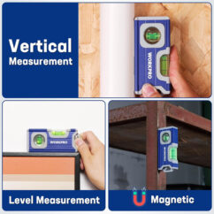 • Nivel pequeño de 4-1/2 pulgadas, mininivel magnético de bolsillo con 2 burbujas de 90°/180°, construcción de aleación de aluminio, azul cobalto